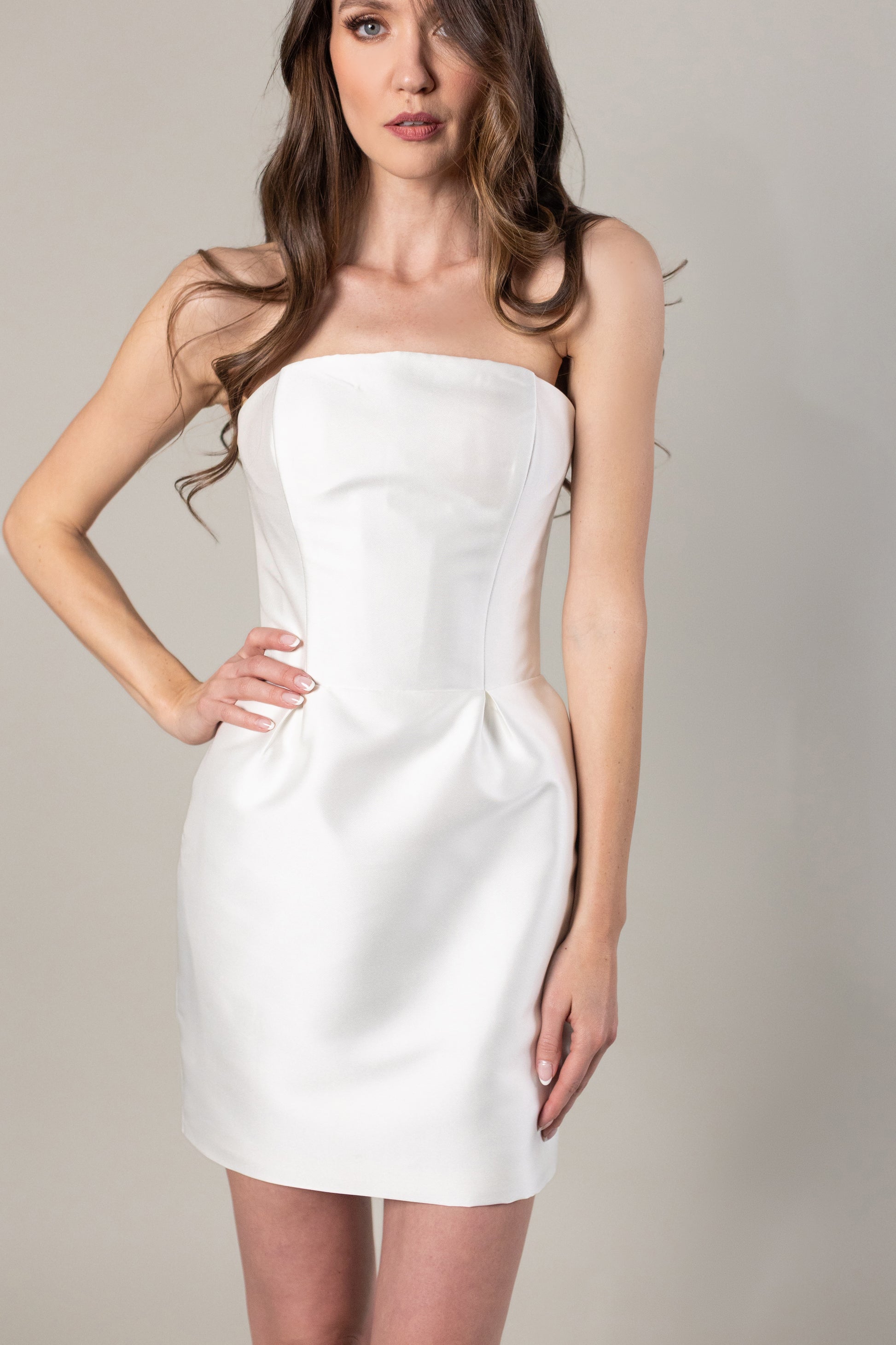 The Audrey Mini Dress is a stunning piece that combines effortless style and comfort. Featuring a strapless design and a convenient back zipper, this dress is perfect for any occasion. With its elegant silhouette and versatile design, this dress is sure to make you stand out in any crowd.