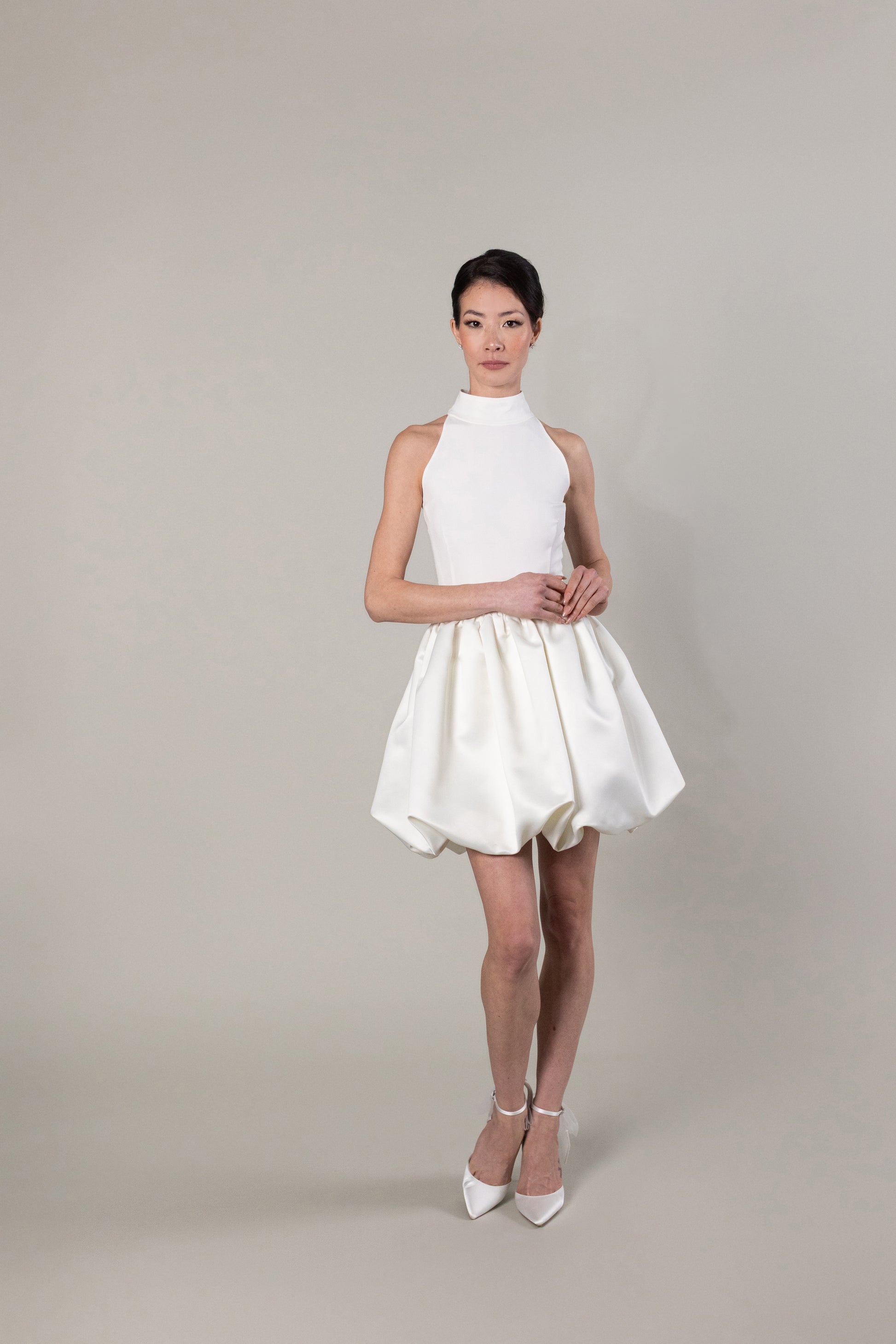 Sleek and polished. This bikini-cut stretch crepe bodysuit features a modern mock neck, back zipper, and convenient crotch snaps. The structured fabric hugs in all the right places-perfect for layering or styling solo.