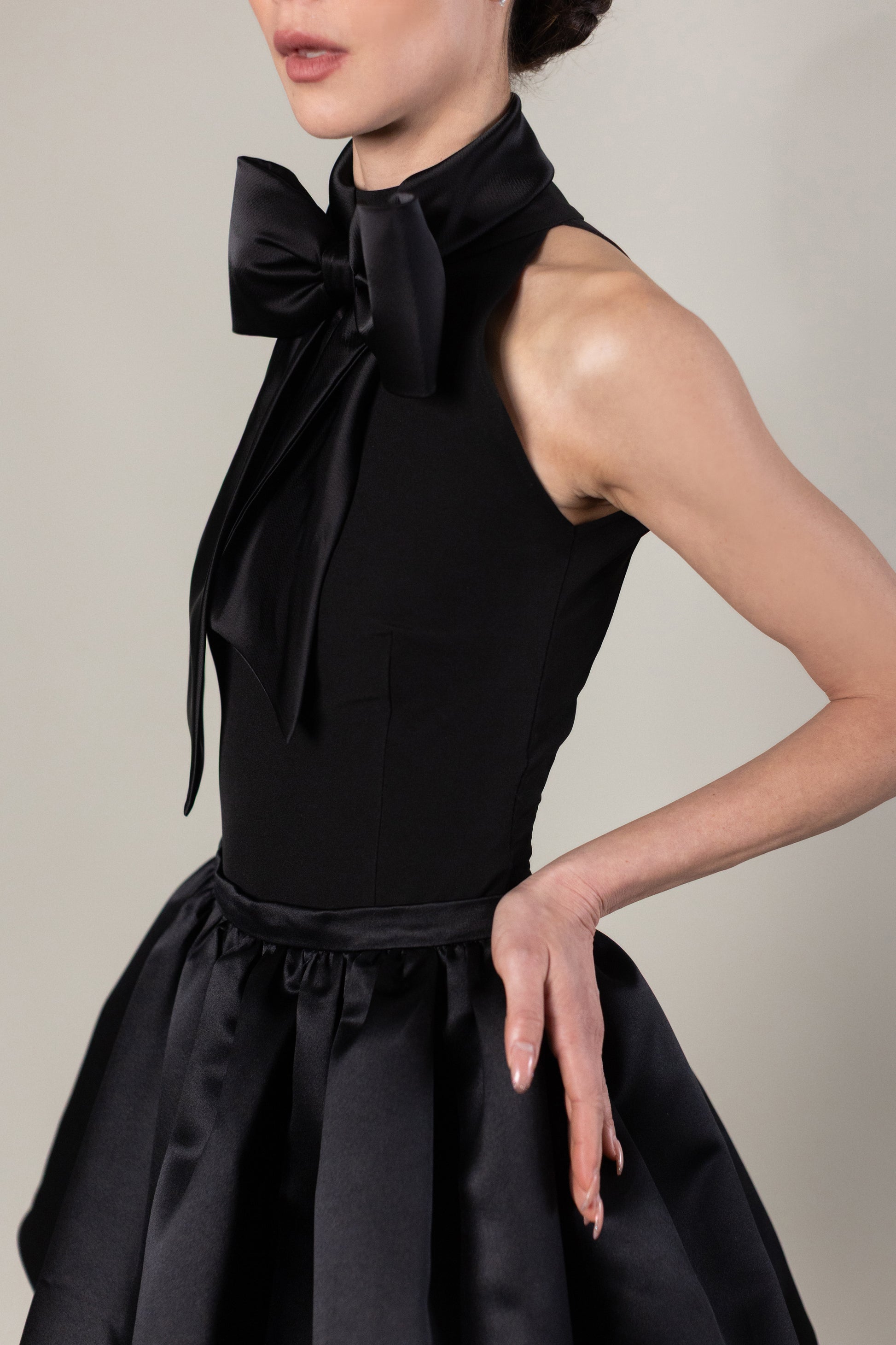 Our Ingrid bow is a sleek, elegant accessory made from duchess satin fabric, designed to add a sophisticated touch to any attire. It features a soft, glossy finish that complements formal and semi-formal outfits, providing a polished look.