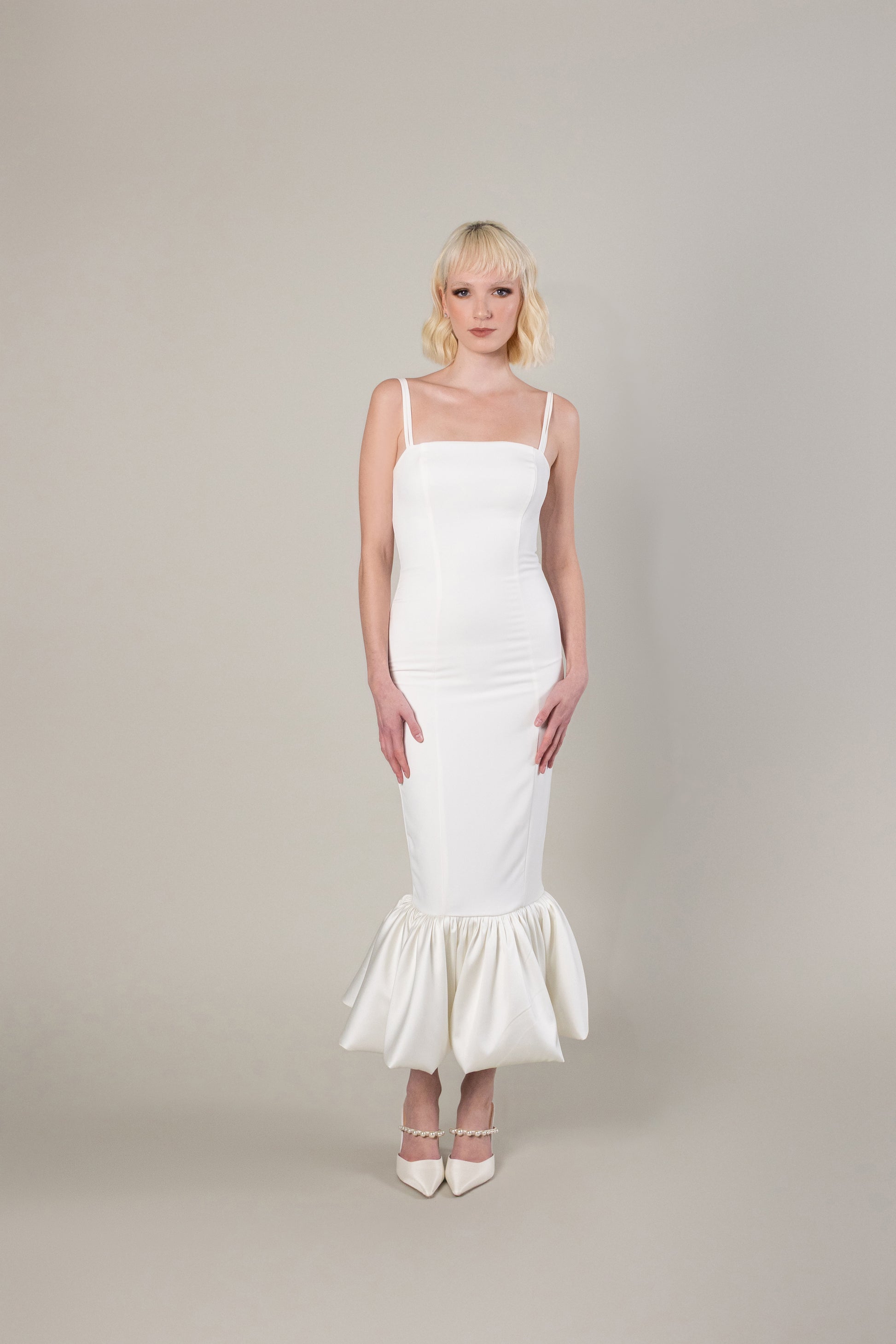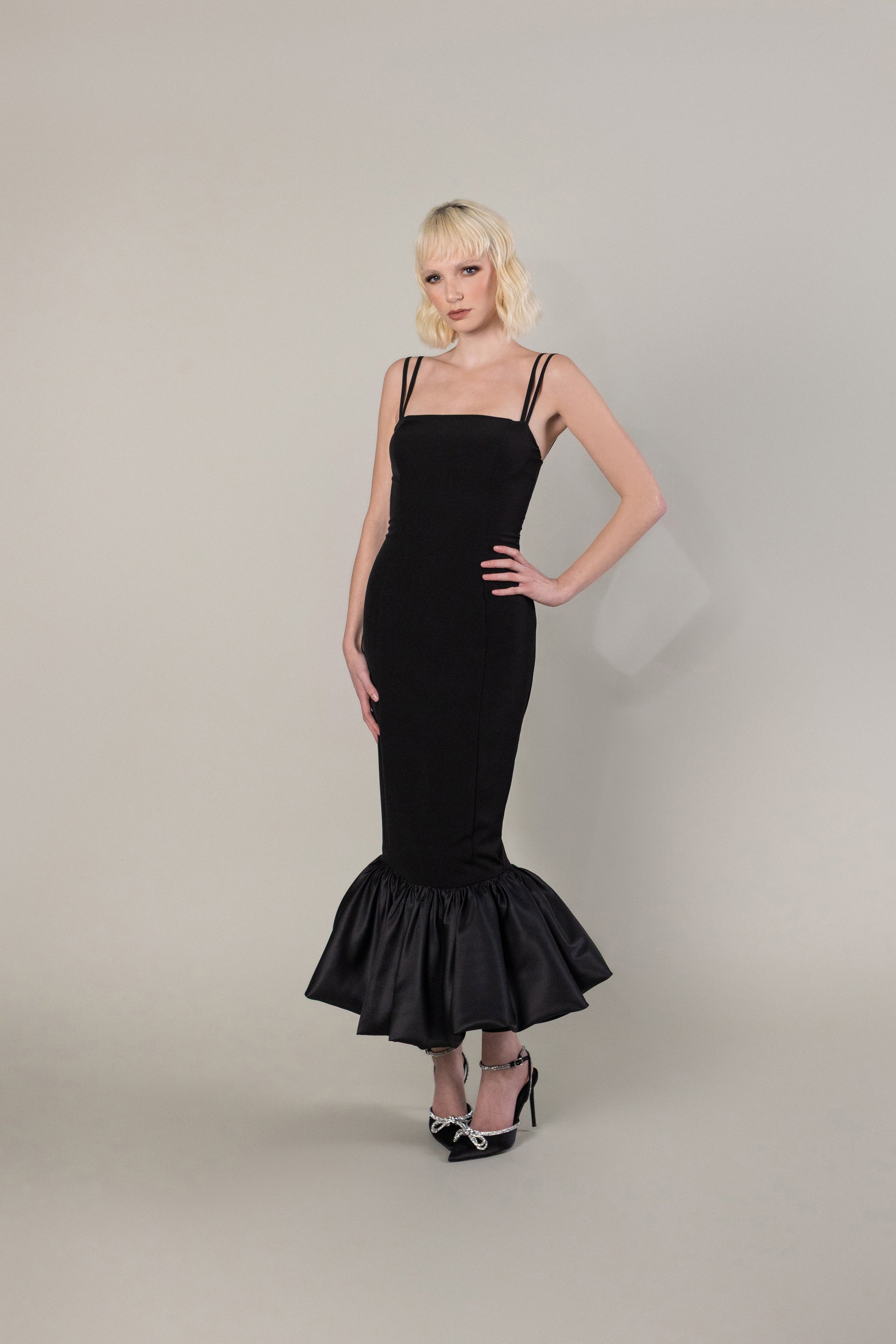 This fitted Loren dress features a flattering bubble hem end that adds playful movement to your look. Designed with expert precision, this dress will enhance your silhouette and make you feel confident and stylish. Perfect for any occasion, the Loren dress is a must-have in every fashion-forward woman's wardrobe.