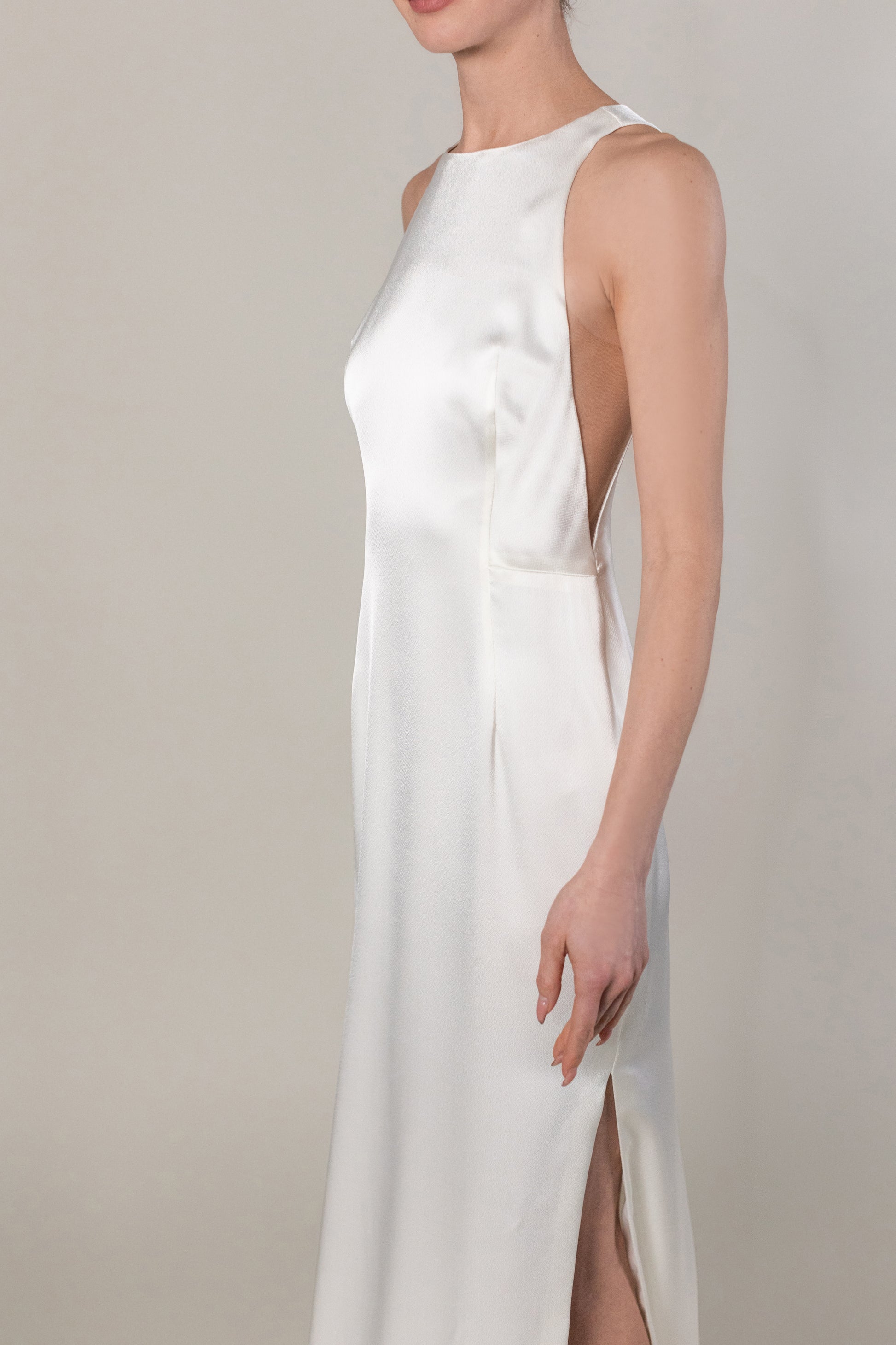 Expertly crafted from luxurious Satin and Mesh fabric, the Rita Dress features a flattering halter neck design and chic side slits. The fitted silhouette is accentuated by a sleek back zipper, creating a sophisticated look that is perfect for any occasion. Elevate your wardrobe with this timeless and elegant piece.